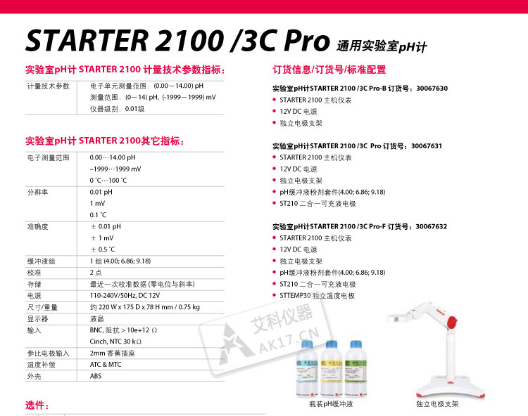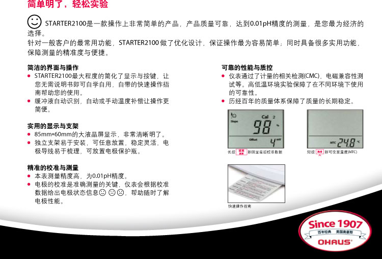奧豪斯實驗室pH計STARTER 2100/3C pro-B酸度計產品介紹