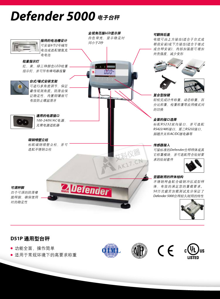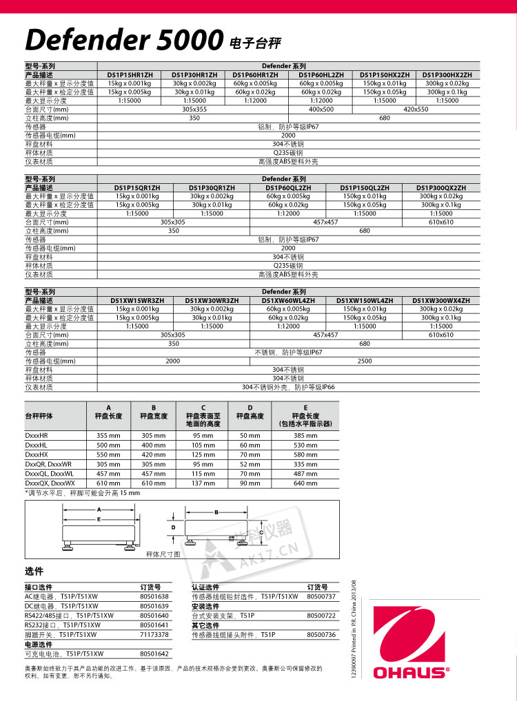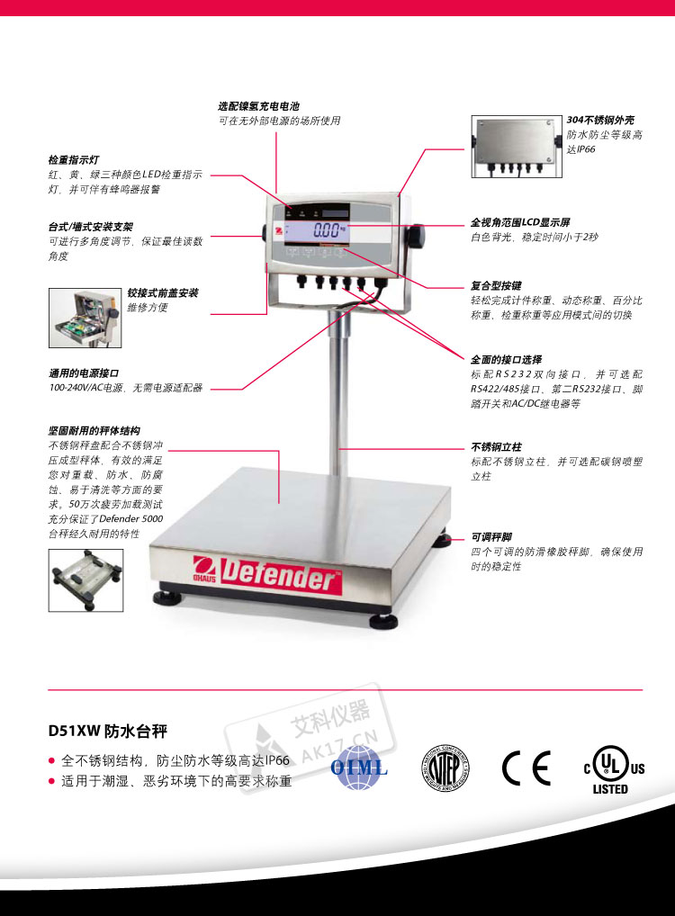 奧豪斯防水臺秤D51XW300WX4ZH 300kg全不銹鋼設計,整秤IP66防塵防水