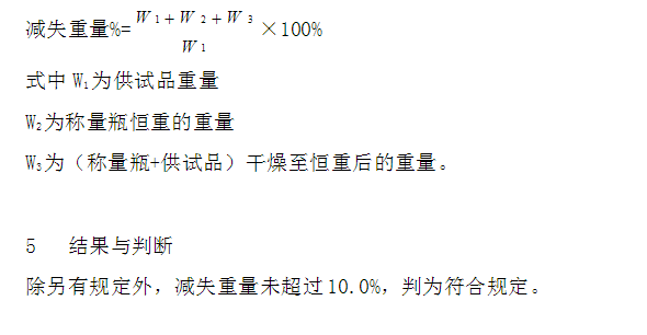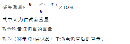 4.1 記錄干燥時的溫度、時間。 4.2 記錄每次稱量數據和恒重數據。 4.3 計算減失重量的百分率:
