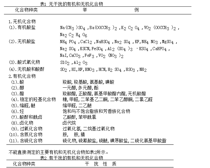 Karl-Fisher滴定法可適用于多種有機和無機物中含水的測定。由于各種化合物性質的差異, 可分為能直接進行測定和不能直接進行測定兩類。可以直接測定的主要有機和無機化合物如表1所示。