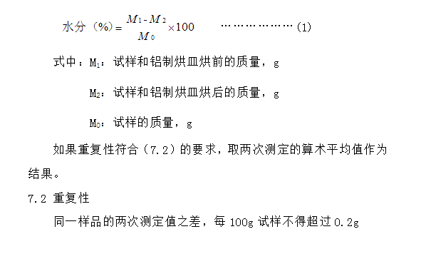 實(shí)驗(yàn)室常規(guī)儀器及下列各項(xiàng): 5.1 鋁制烘皿:具蓋 5.2 鼓風(fēng)電熱恒溫干燥箱 5.4 干燥器:內(nèi)盛有效干燥劑 5.6 分析天平:感量0.001g 6. 測(cè)定步驟: