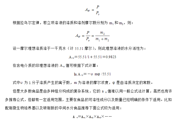 即總的水分活性Aw等于各組分水分活性值的乘積。