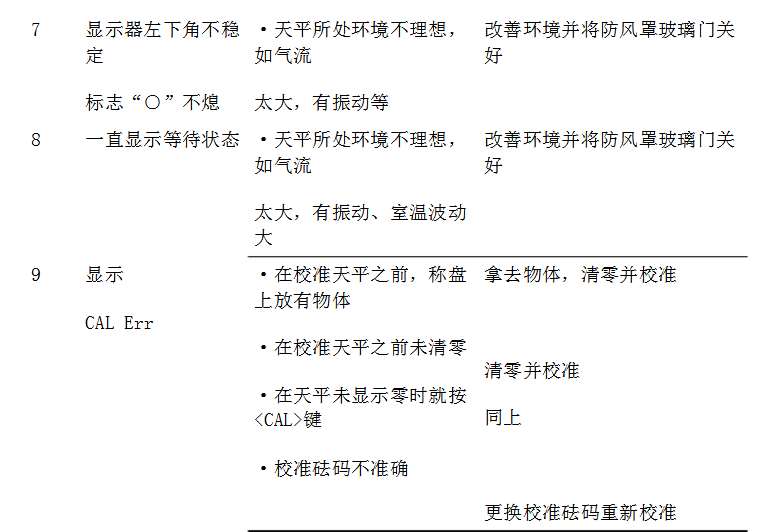 將標準砝碼放到稱盤中心位置,天平顯示CAL„„,等待十幾秒鐘后,顯示標準砝碼的重量。此時,移去砝碼,天平顯示回零,表示校準結束,可以進行稱量了。  如天平不回零,可再重復進行一次校準工作。  ◎ 稱量: