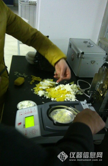 在成品檢測環節,水分含量多少影響肥皂的軟硬度。少了容易干裂,多了則容易變形,難以保存(G標要求水分含量不能大于25%)。所以,在每天產量很大的情況下,  對測試效率和時間都有極高的要求,需要在5分鐘內準確測出水分結果。